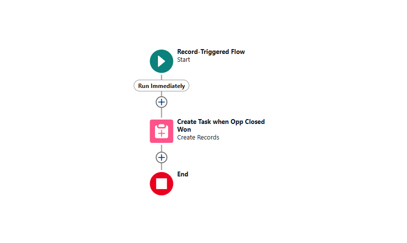Example Use Case (After-Save): Imagine whenever a Deal (Opportunity) is closed, you want to automatically create a set of follow-up tasks: one task for Finance to send an invoice, another task for an Account Manager to check in after 30 days, and maybe post a congratulatory message to a Chatter group. This requires multiple actions across different related records (Tasks, Chatter posts) and even a scheduled action (the 30-day follow-up). A single after-save flow can handle all of this: it can create the Task records, post to Chatter, and use a Scheduled Path to create the 30-day follow-up task later. Trying to do any part of this in a before-save flow would be impossible – you need the after-save capabilities here.